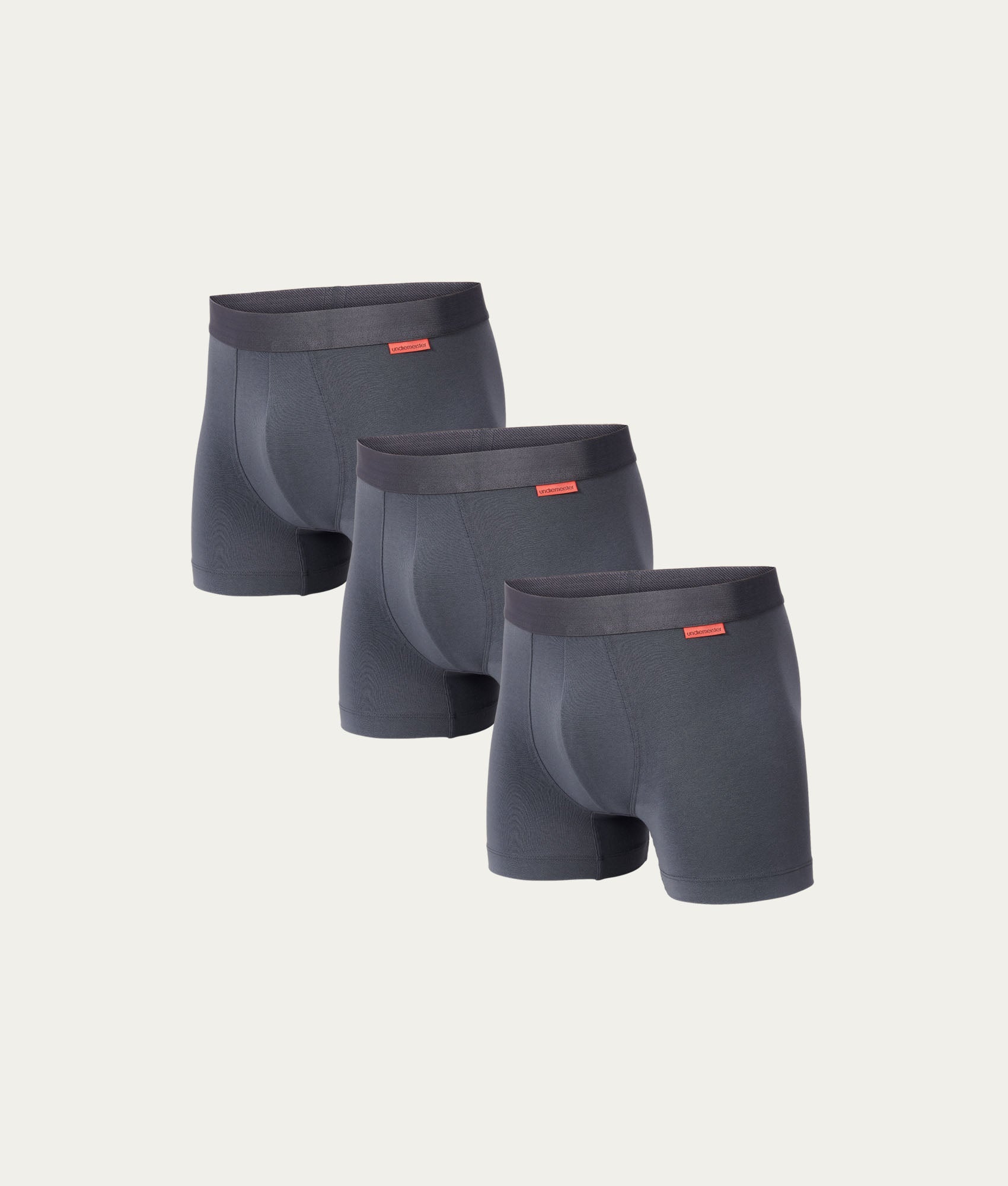 Drei identische Boxershorts in einem kräftigen Grauton. Hergestellt aus seidig-weichem, atmungsaktivem Mellowood mit schmaler Passform. Völlig nahtlos und farbecht. CO₂-neutrale Produktion in Europa.