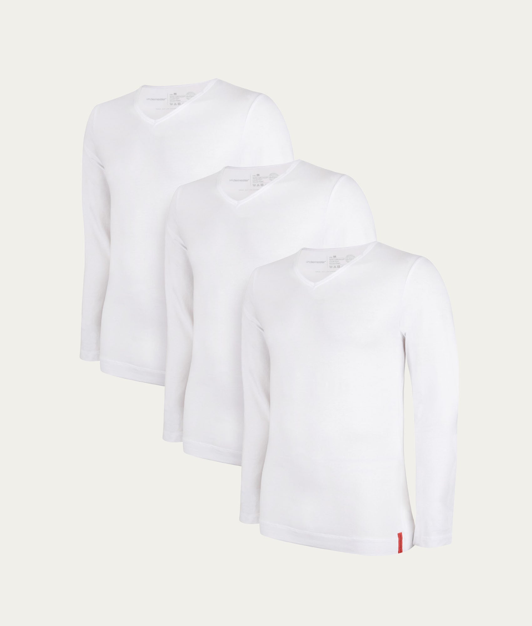 Weißer Slim Fit Longsleeve V-Ausschnitt Chalk White 3er-Pack